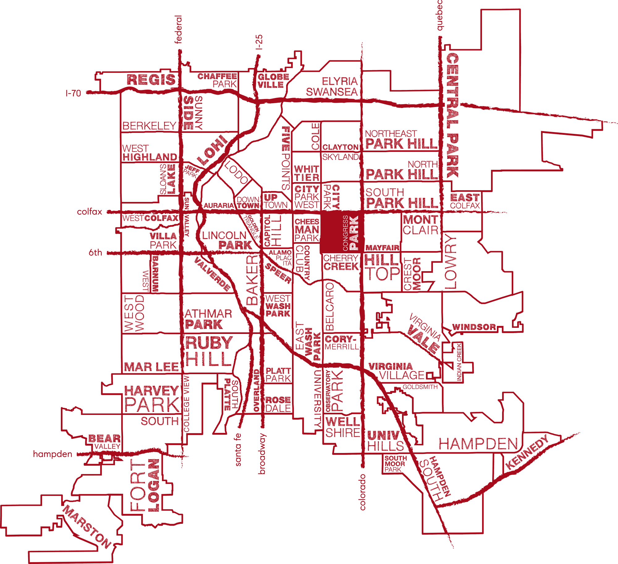 The Congress Park neighborhood is mostly residential but has easy access to popular retail establishments at its edges along 6th Avenue, Colorado Boulevard, and Colfax as well as pockets of local businesses in the heart of the neighborhood on 12th Avenue. Most homes in the neighborhood are bungalows or Denver-Square style homes built between the 1890s and the 1940s with larger mansion-style homes situated along the 7th Avenue Parkway. Residents are drawn to the Congress Park neighborhood for its quiet residential streets and balance between a less urban feel yet central location with easy access to Downtown Denver and Cherry Creek North both just a short walk or bike-ride away!