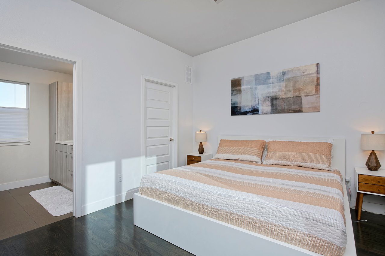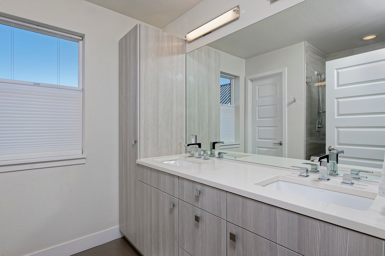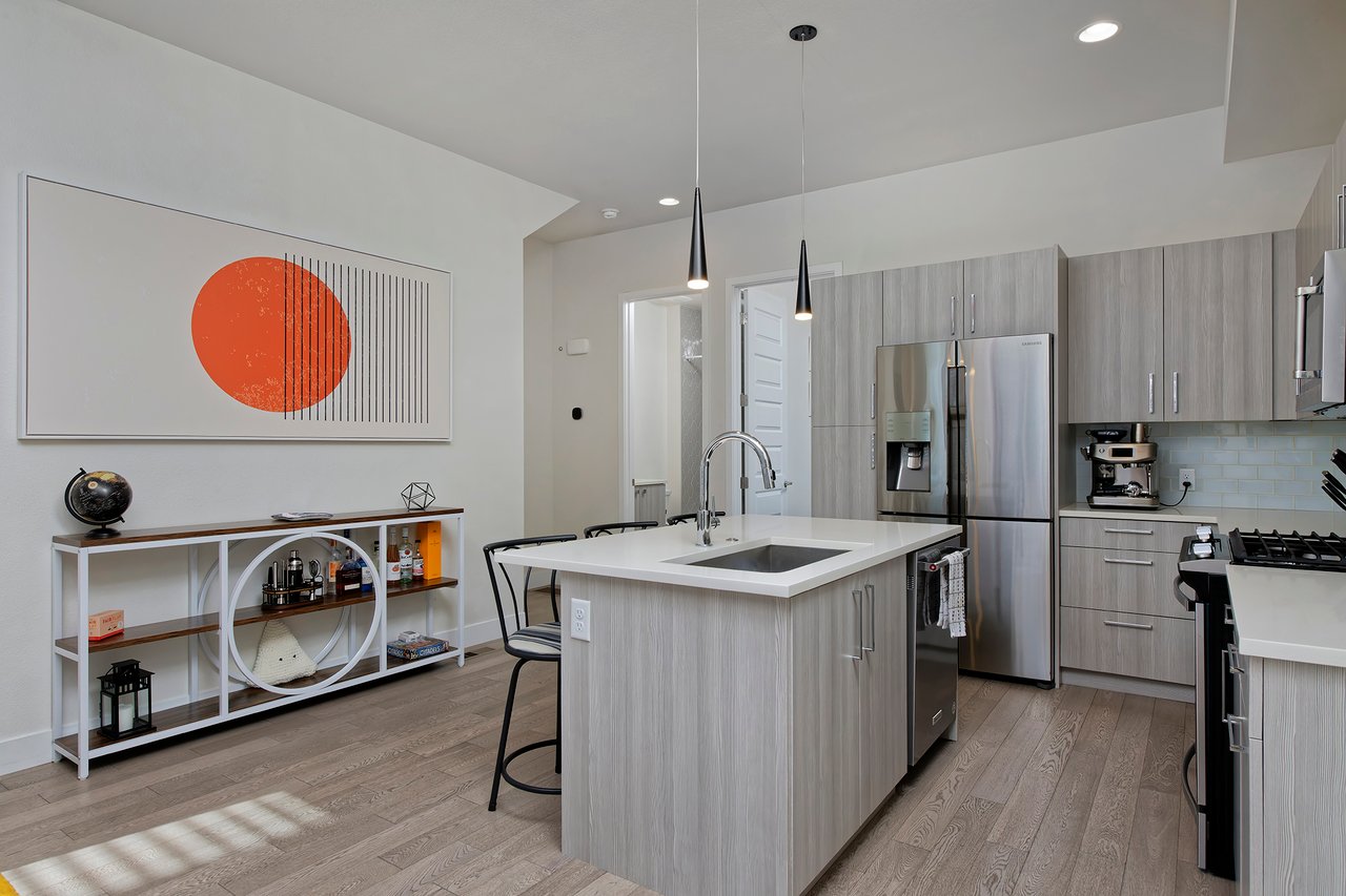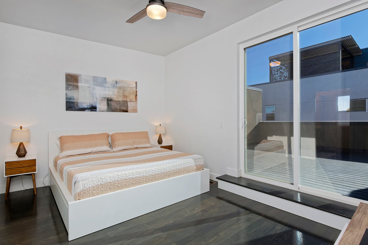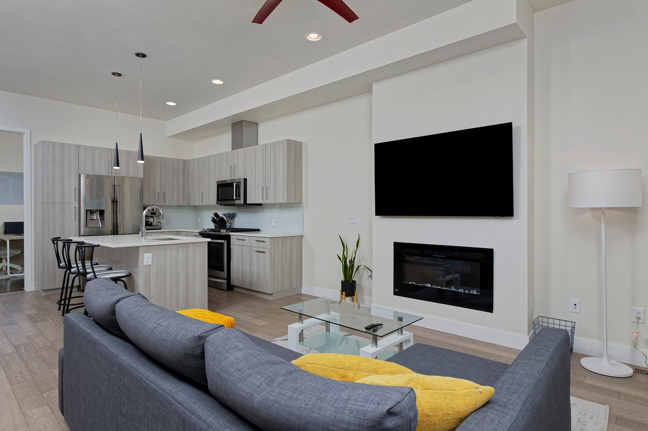 Open house on Saturday, 1/31 from 11am to 1pm. Move-in ready, 3 bedroom and 3 bathroom townhouse with a huge private rooftop deck overlooking the community courtyard. This unit has been impeccably maintained and features tasteful, like-new finishes throughout with a modern aesthetic. Large southern facing windows on each level flood the unit with natural sunlight year round. The main floor has a spacious open floor plan with high ceilings and recessed lighting. The kitchen has a large center island with bar seating, contemporary slab-front cabinetry, white quartz countertops, a glass tile backsplash and stainless appliances including a gas range. An electric fireplace in the living room provides cozy ambiance while an efficient dining area has just the perfect amount of space. The primary suite is on the upper level offering comfortable separation from the rest of the unit and features a spacious rooftop deck, wood flooring, a walk-in closet and an en-suite bathroom with dual undermount sinks, Euro-glass shower and water closet. Laundry is conveniently located directly outside the primary suite. The main floor bedroom has wood floors, plenty of closet space and an adjacent full bathroom. The lower level has a 3rd bedroom with a full en-suite bathroom that's an ideal guest suite, home office or short-term rental opportunity. An oversized attached garage is EV charging ready and has built-in storage for all of your Colorado gear while a dedicated surface space next to the building is ideal for guests. This unit is centrally located and just a short walk to City Park, an easy bike to RiNo, 9th+CO and Downtown or a quick ride to DTC and Anschutz! The nearby Light Rail station provides easy access to airport and the mountains!